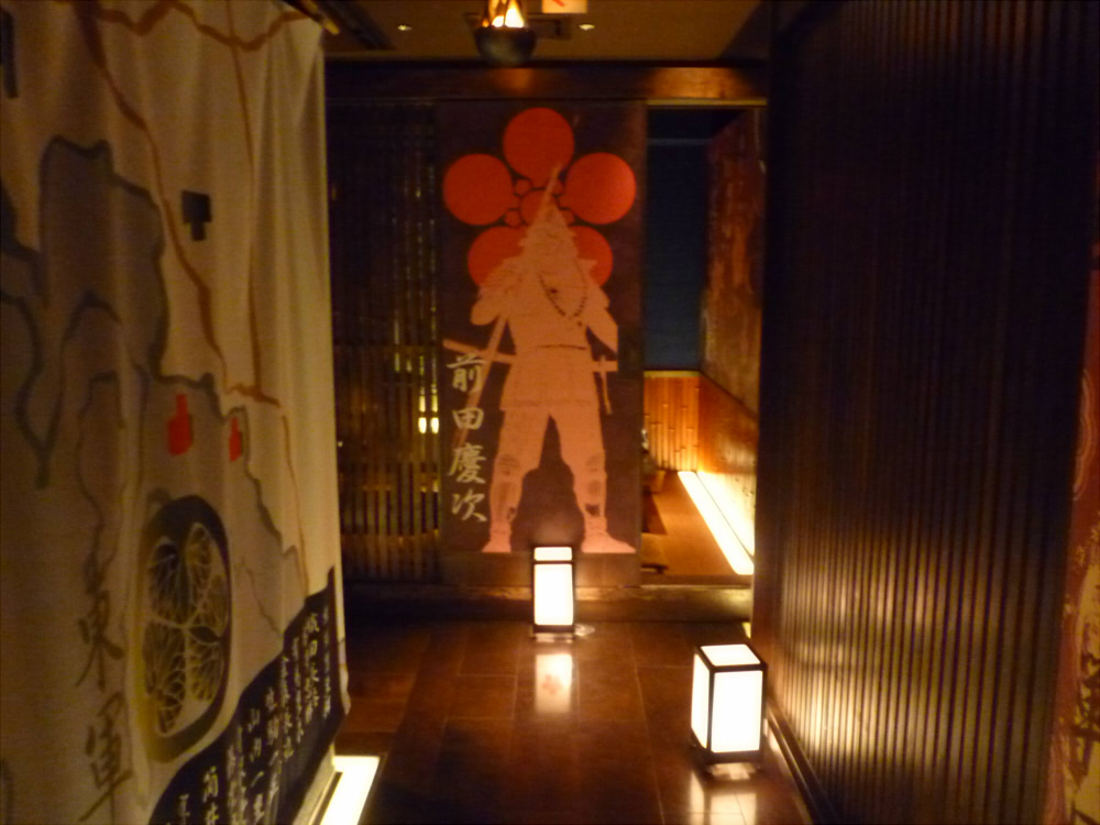 それから個室に案内されたんですが、途中廊下の両脇に各軍の旗が並んでるところがあってすごい戦国気分になりました。