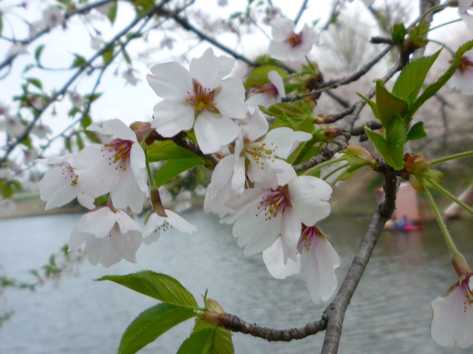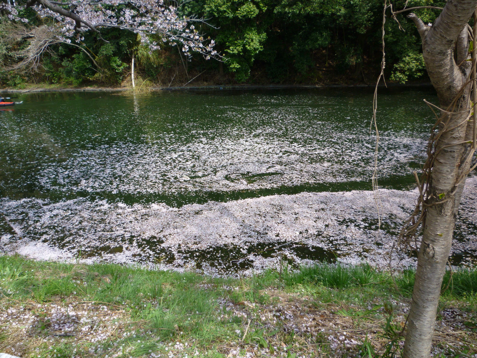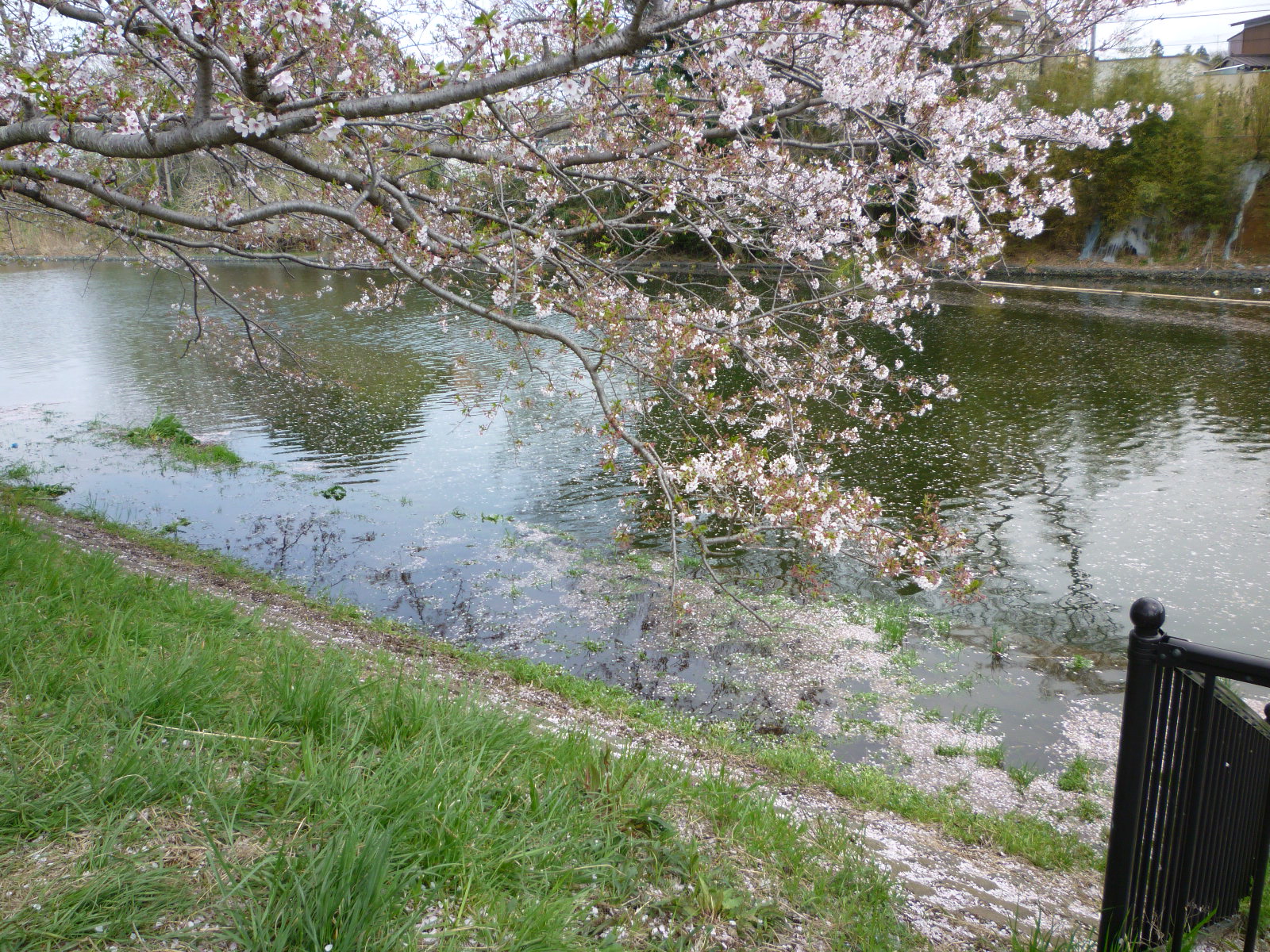 すっかり葉桜ですが、川に落ちた花びらがなかなか風情でした。