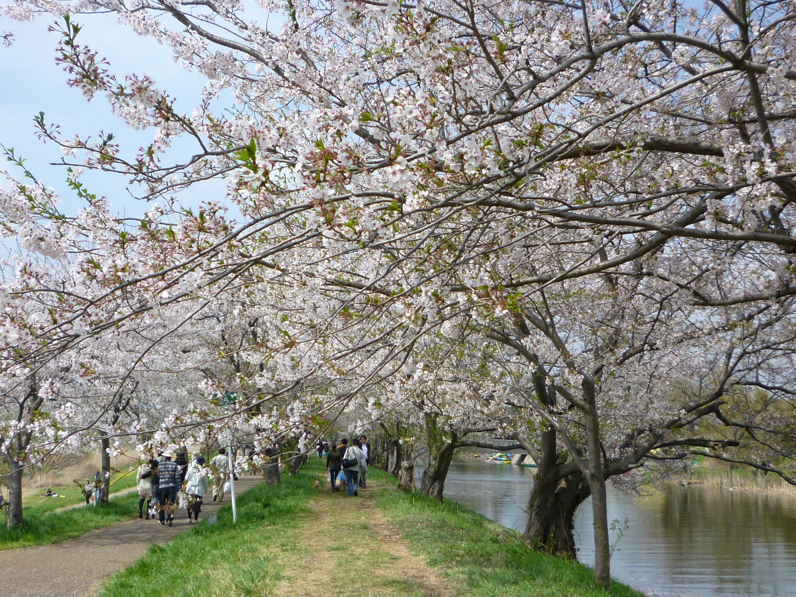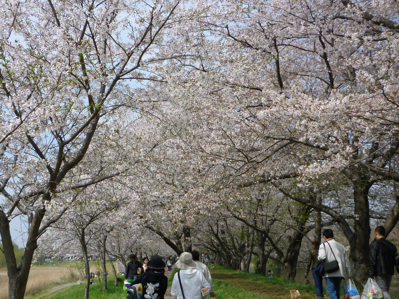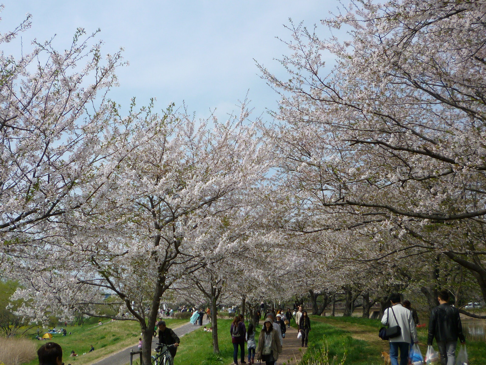ちなみにほとんどの人がこっち側の駐車場から入るらしくて、このあたりはシートひいてお昼寝する人とかバトミントンだのキャッチボールする親子連れだとかで賑わってて、花見というより好きなように遊べる公園みたいな感じになってました。