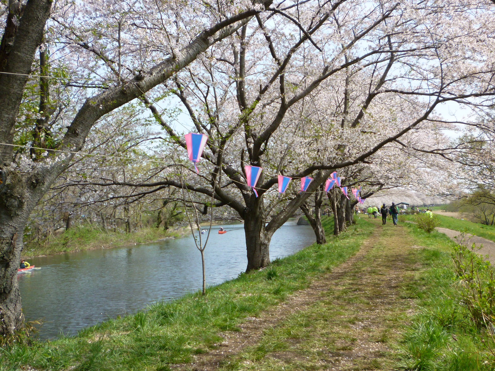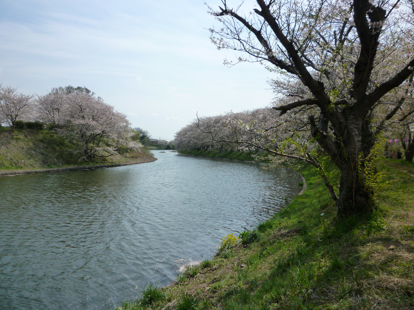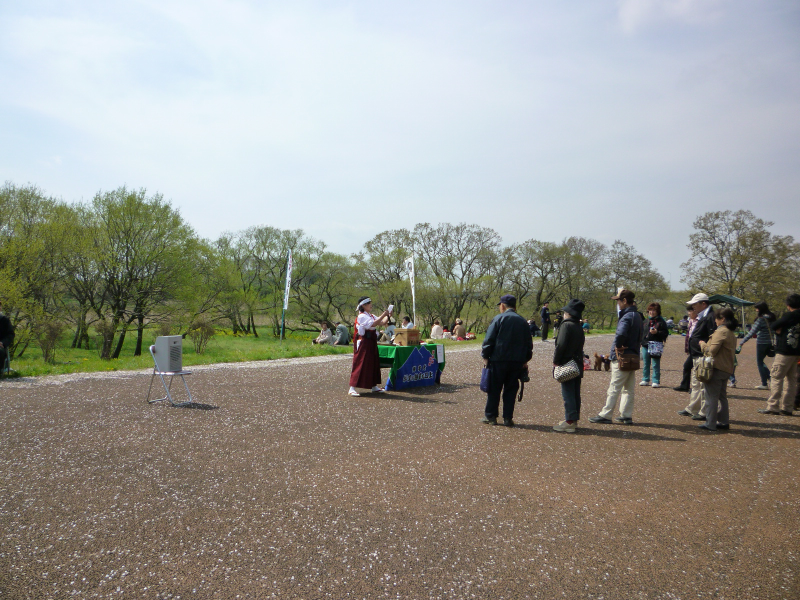 ちなみにほとんどの人がこっち側の駐車場から入るらしくて、このあたりはシートひいてお昼寝する人とかバトミントンだのキャッチボールする親子連れだとかで賑わってて、花見というより好きなように遊べる公園みたいな感じになってました。