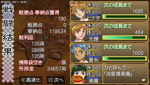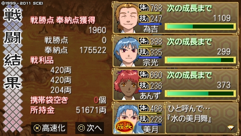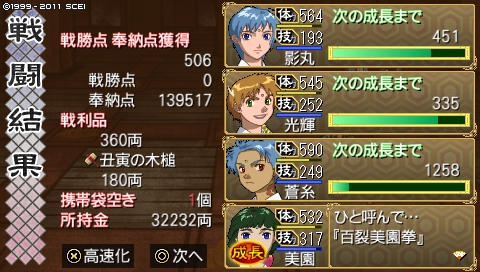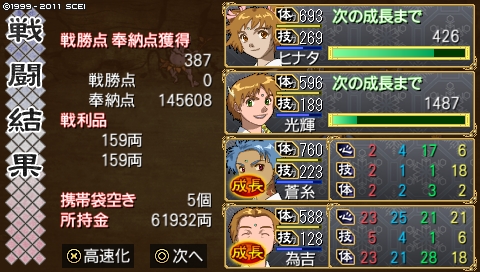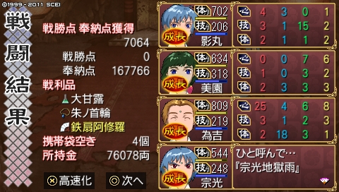 すげぇ・・・。影丸は技が全然伸びなかったのに、宗光で咲いたね・・・!
